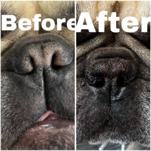 Franse bulldog Tusia heeft onlangs bij ons in de kliniek haar neusvleugels laten bijknippen. Door haar korte snuit had zij moeite met ademhalen — iets wat we regelmatig zien bij kortsnuitige rassen. Deze relatief kleine ingreep kan ervoor zorgen dat er meer lucht door de neus kan stromen, waardoor het ademen makkelijker wordt.